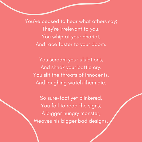 I like to think of myself as a creative usually with a leaning towards history or with a political twist and sometimes just plain silly! I used to be an actress and artist simultaneously over past decades; Mainly theatre and murals. Then I swapped to writing short stories, a Novella, Poetry and creating large canvases before becoming a ‘Senior Fragrance Sommelier’ for Penhaligon’s British Heritage Perfume House.